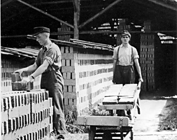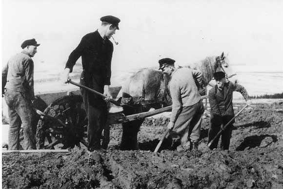 Lehmladen in Handarbeit, bevor der Bagger eingesetzt wurde